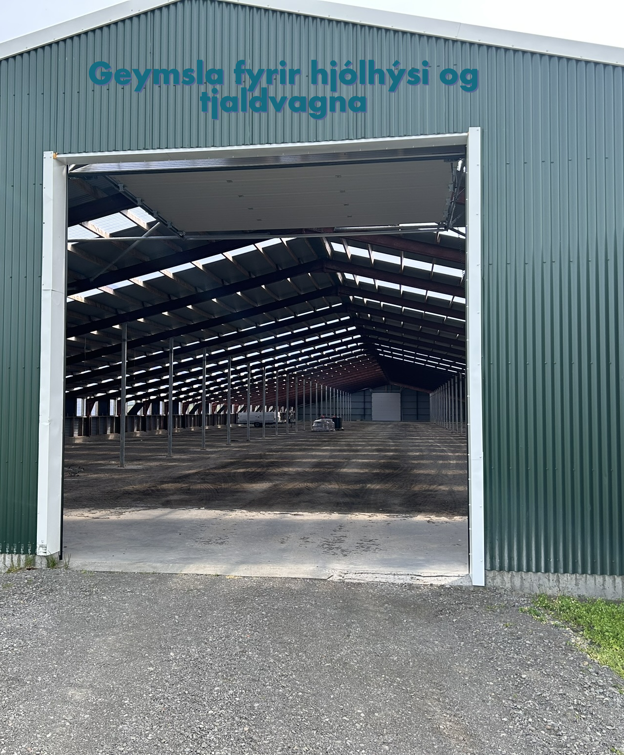 Geymslur fyrir hjólhýsi, húsbíla, tjaldvagna, snjósleða, dráttavélar, heyvinnuvélar og önnur tæki sem þurfa á geymslu að halda.